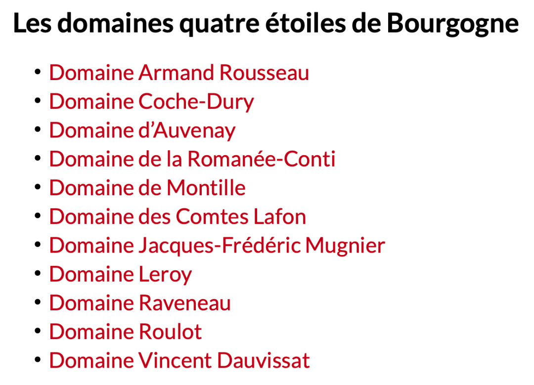 酒庄在勃艮第的夜丘和伯恩丘都拥有众多精华地块,其中尤以下面几个卓越地块为酒庄在各个勃艮第核心村庄的代表作: